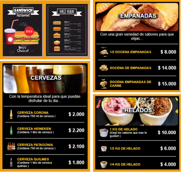 Para mostrar en tus pantallas Productos, Precios y Promociones